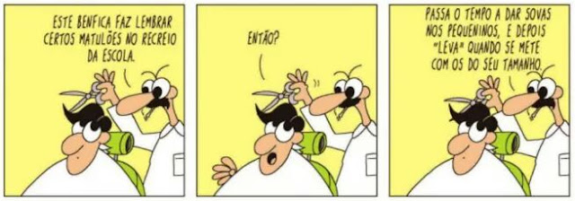 Não pode espantar ninguém minimamente que a capa da bolha seja esta - a do rascord também é gira. Claro que não haveria o caminho para os media tugas que não o do felácio ao ficaben como um miminho de consolação. De facto, a moral ficabenista tem de estar sempre alta. Era ver os ficabens todos no estádio a gritar pela sua equipa, a rodar o seu cachecol como se de uma grande vitória se tratasse. É, de facto, uma vitória moral, como nós bem apreciamos. Por todo o lado, nas 3 televisões generalistas e suas afiliadas do cabo orientadas para a informação, se teciam loas e alvíssaras ao "jogo de carácter" e a "exibição personalizada" do ficaben, que se "bateu olhos nos olhos" com o Bayern e "esteve perto de vencer". É, obviamente, falso, mas era o que faltava estar agora a analisar os jogos do inimigo.